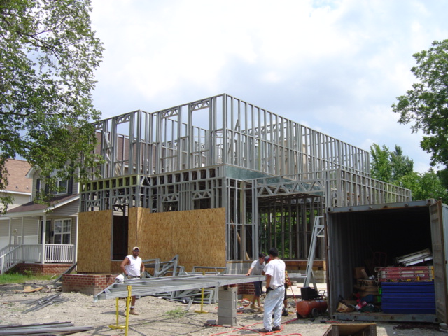 In a typical 2 story 3 bedroom home, of approx 2500 SF, a traditional steel framing system would comprise of approximately 3000 individual members, either prefabricated in assembly jigs to form wall panels or erected and fixed on site.